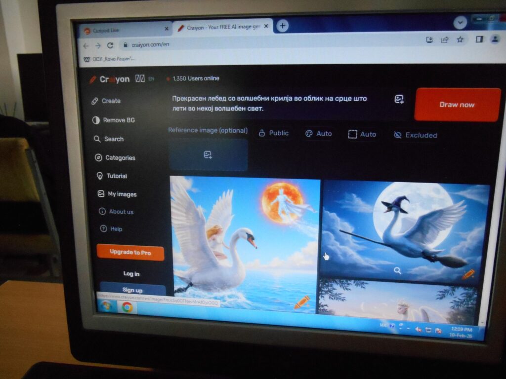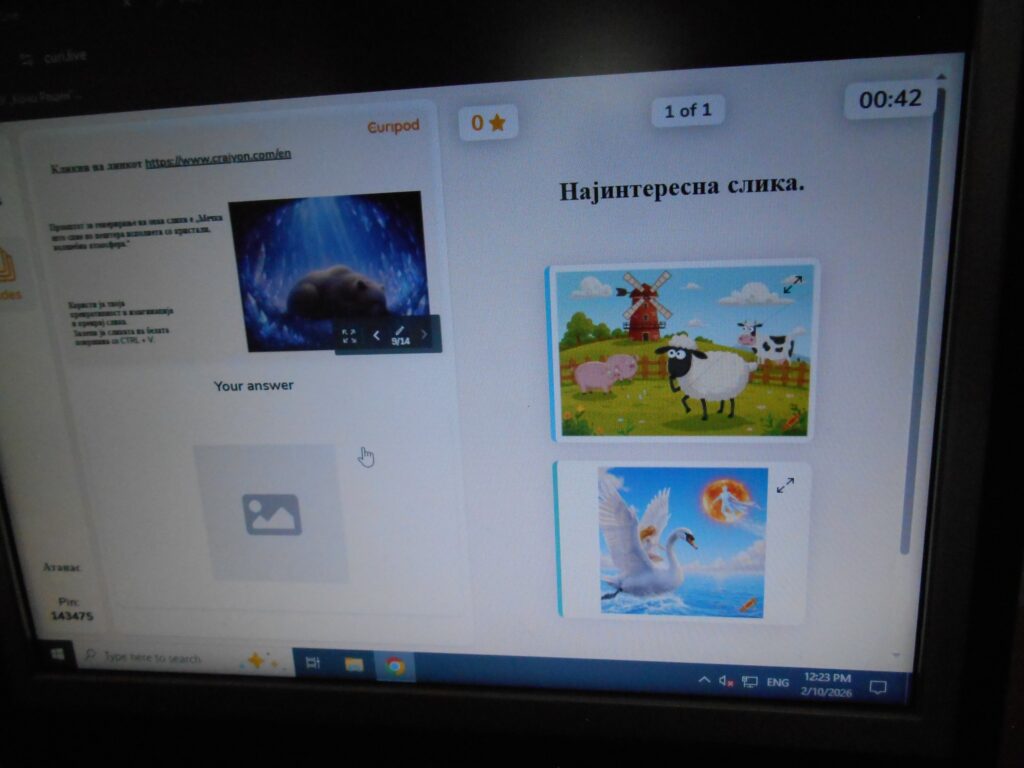 1. „Претвори ја твојата идеја во визуелна форма“ – генерирање слики со вештачка интелигенција од текстуален опис (text-to-image). Учениците ја користеа својата имагинација и креативност.